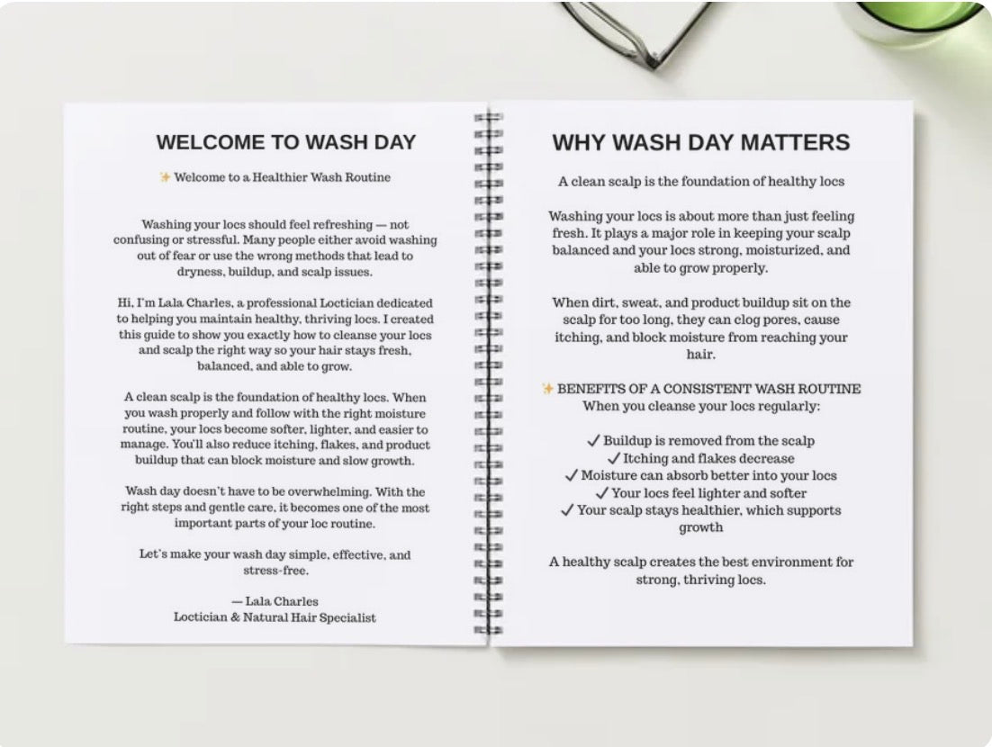 Created by Professional Loctician Lala Charles, this guide teaches you exactly how to wash and maintain your locs at home the right way.